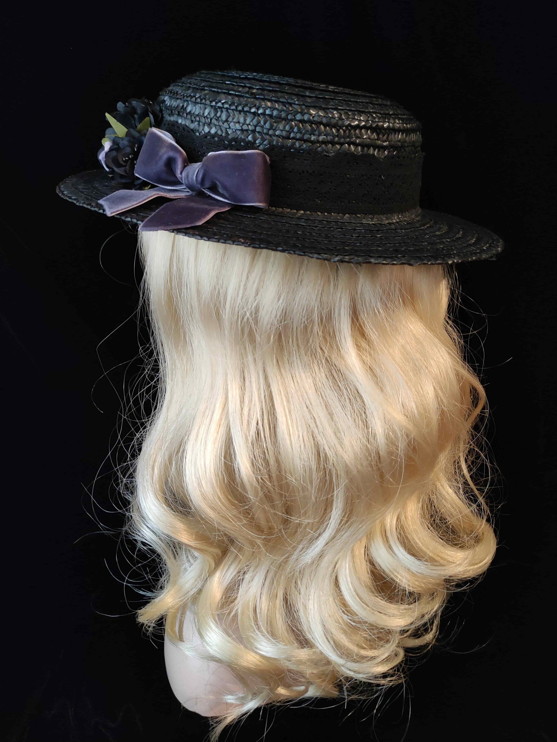 The pamela is tied with a taffeta ribbon and a hidden comb.