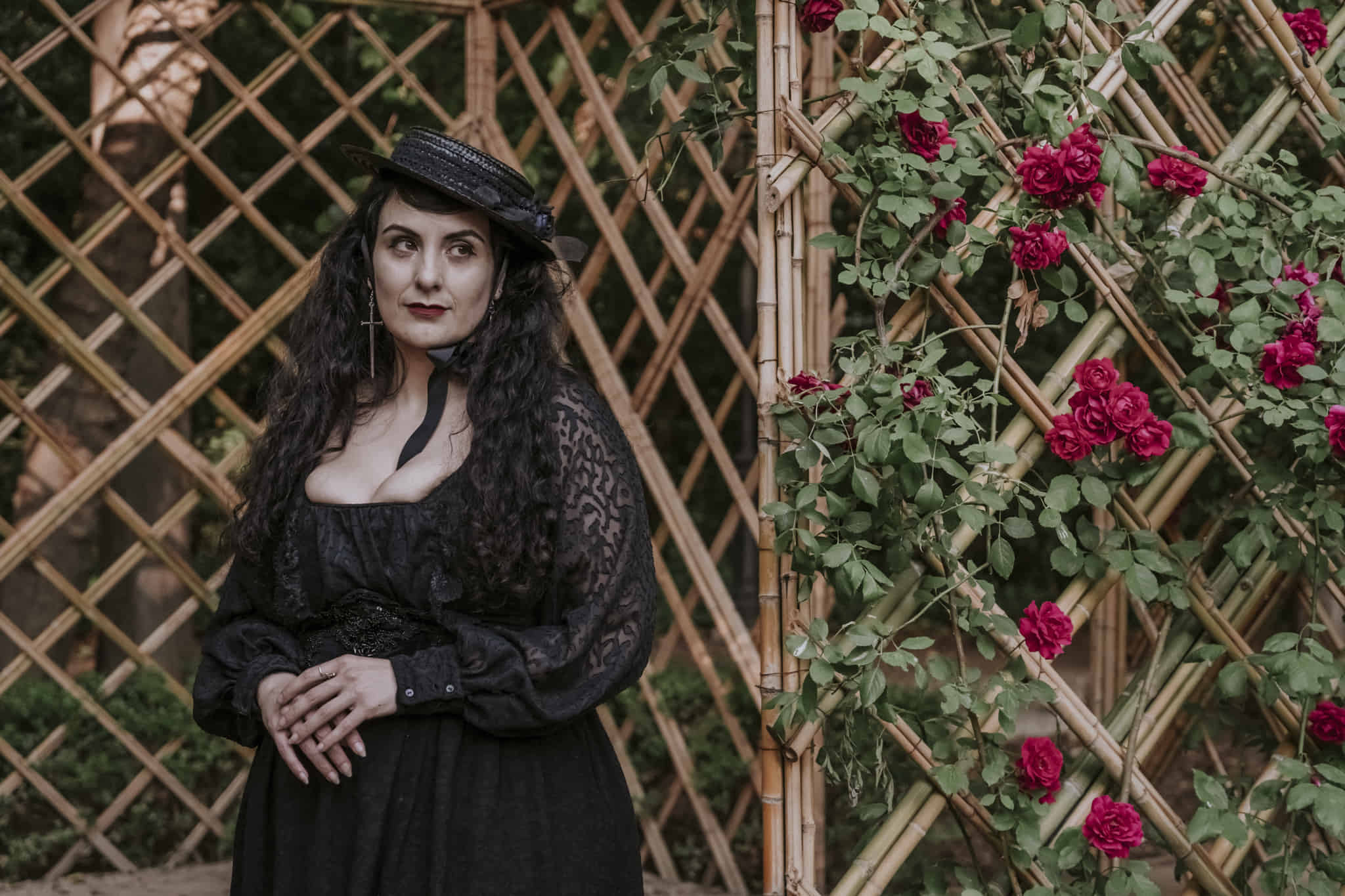 The hat is tied with a taffeta ribbon and a hidden comb.